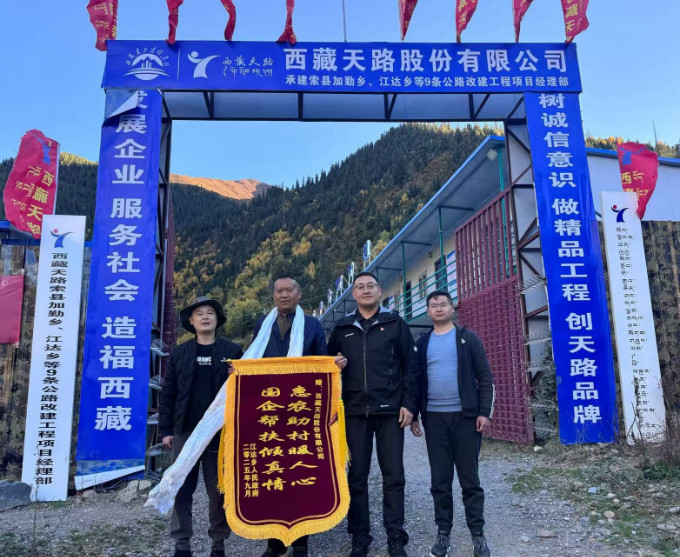一面錦旗,承載著民眾的殷切期盼;兩行金字,鐫刻著深沉的責(zé)任擔當。10月9日下午,索縣江達鄉(xiāng)人民政府工作人員專程來訪,將一面印有 “國企幫扶傾真情,惠農(nóng)助村暖人心” 的錦旗送到西藏天路股份有限公司承建的索縣加勤鄉(xiāng)、江達鄉(xiāng)等9條公路改建工程項目部,以質(zhì)樸且真摯的方式,表達對企業(yè)助力鄉(xiāng)村交通建設(shè)、改善群眾出行條件的深切感恩之情。
